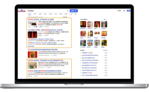 給大家舉個例子,搜索“黔酒原著酒”,你會發現百度首頁都是糧草倉有限公司的廣告位。